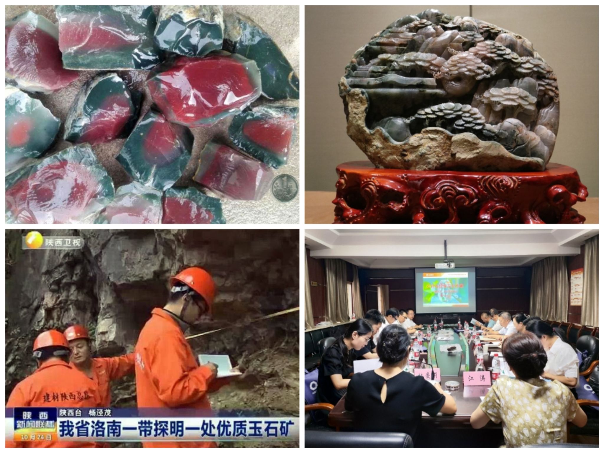 近年来,陕西总队在承接陕西省级地勘基金项目时,对“秦紫玉”进行了首次勘查评价,取得了喜人的找矿突破成果。“秦紫玉”是陕西省内首个被发现的硬玉矿种,原石以“绿边红心”为特点,产于陕西省商洛市的秦岭山区,该玉石独特的紫绿搭配在国内石英质玉石中尚属首例,雕刻的工艺品具有很高的艺术性和观赏性。该找矿成果曾被自然资源部、陕西新闻联播、《中国国土资源报》、《中国建材报》以及各大主流网站广泛报道,产生了较大社会影响。依托该成果,陕西总队向陕西省自然资源厅、陕西省市场监督管理局主管部门申报了《秦紫玉 分级》地方标准的制订。
