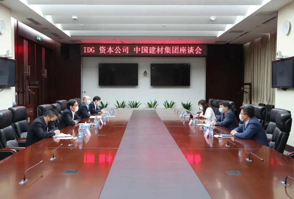 IDG资本公司合伙人牛奎光,运营合伙人方珺;中国建材集团党委常委、副总经理常张利,中国建材股份副总裁、中建材投资董事长、中国巨石副董事长蔡国斌,集团资本运营部副总经理(主持工作)张华参加会见。
