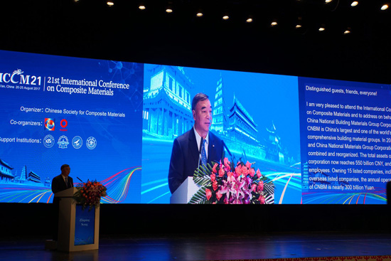 8月21-25日,第二十一届国际复合材料大会在西安曲江国际会议中心举行。中国建材集团董事长、党委书记宋志平应邀出席大会开幕式并致辞。会前,宋志平和与会的两院院士、国家自然基金委主任杨卫、中国科协书记处书记项昌乐以及西安市常务副市长吕健等进行会谈,就当前国际复合材料的发展进行沟通交流。中国建材集团副董事长姚燕一同参加大会和交流活动。