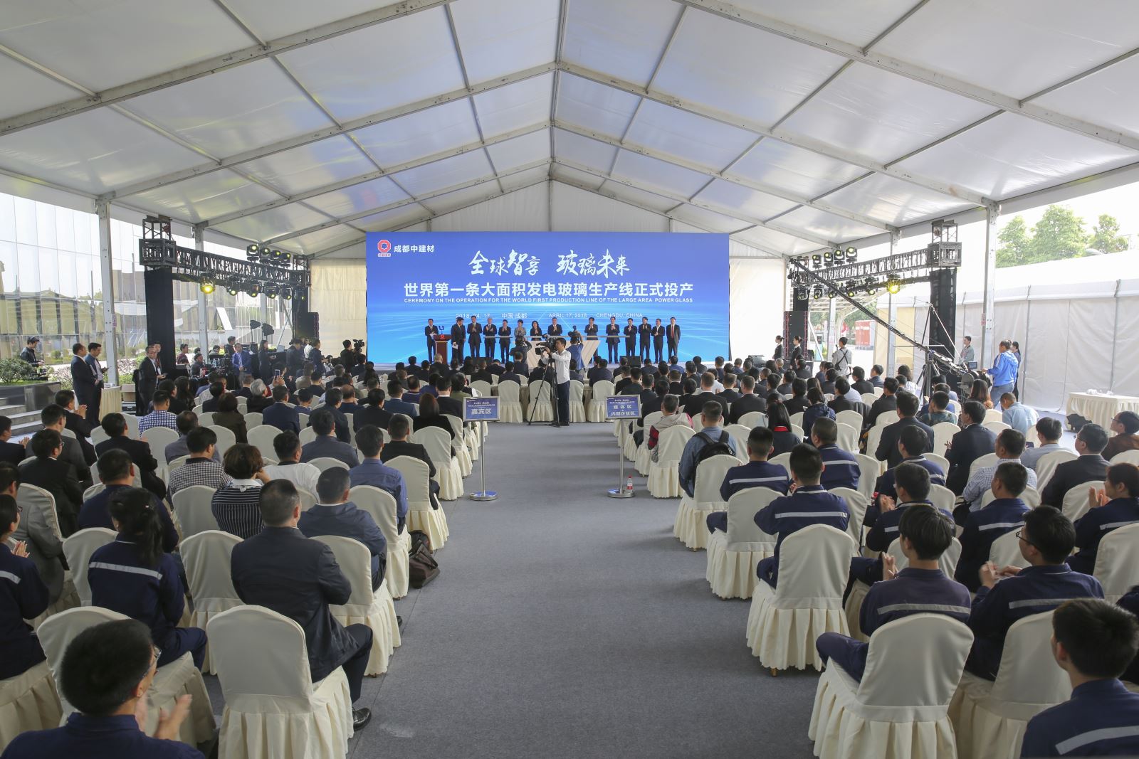 4月17日上午,在深入学习贯彻习近平总书记到川视察重要讲话精神之际,世界第一条大面积发电玻璃生产线在四川省成都市双流区西航港经济开发区正式投产。中国建材集团董事长、党委书记宋志平及成都市委市政府相关领导出席投产仪式并致辞。