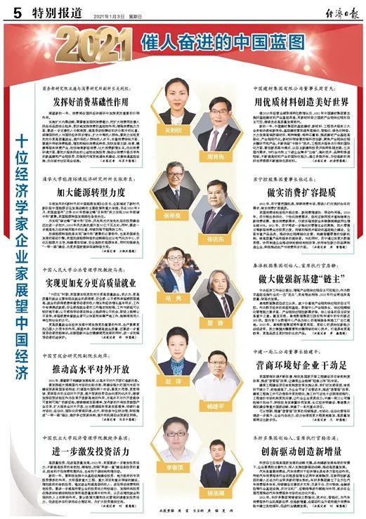 《经济日报》年度策划“2021催人奋进的中国蓝图”,特别报道了“十位经济学家企业家展望中国经济”。中国建材集团党委书记、董事长周育先作为企业家代表,结合集团改革创新发展实际,畅谈了“用优质材料创造美好世界”。下面,小料把全文分享给大家。