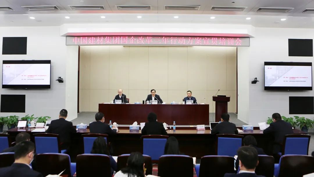 12月18日,中国建材集团召开国企改革三年行动方案宣贯培训会。集团党委书记、董事长、改革领导小组组长周育先,党委常委、总经理、改革领导小组副组长曹江林出席会议并讲话,集团党委常委、副总经理、改革办主任常张利主持会议。
