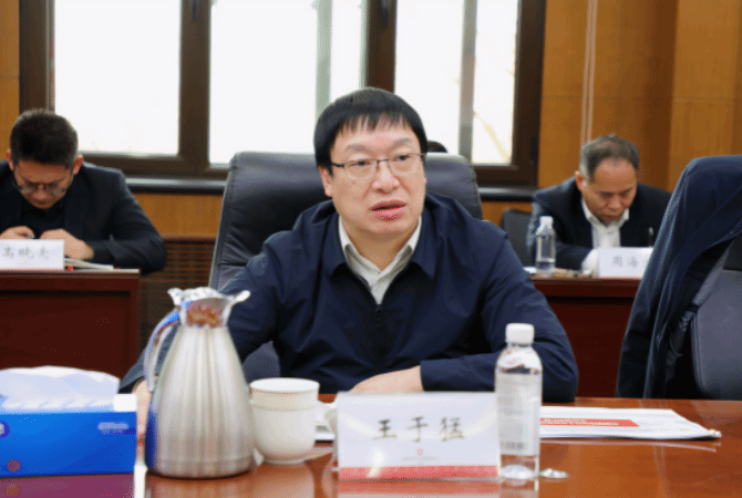 王于猛听取了地勘院关于历史沿革、生产经营、安全环保及绿色生态开展的工作,与地勘院领导班子成员就企业化改革、生态环保、高质量发展、安全生产等方面进行了深入交流,对地勘院取得的成绩给予了充分肯定,强调下一步要抓好科技创新、项目规范化管理、新业务培养、安全环保、风险防控和党风党建工作。
