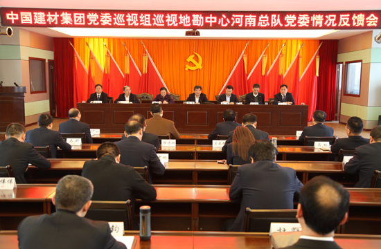 会上,徐晖宣读了《关于对中国建筑材料工业地质勘查中心河南总队党委巡视情况的反馈意见》,指出总队党委能够深入推进全面从严治党,全面学习贯彻落实党的十九大精神,以习近平新时代中国特色社会主义思想为指导,贯彻落实国有企业党建工作会议精神,做好“两学一做”学习教育,坚持民主集中制和职工代表大会制度,落实党风廉政建设责任,把党建工作总体要求纳入企业章程,在强化制度建设、推动总队改革发展等方面做了大量工作。存在以下问题:一是党的领导弱化,领导核心和政治核心不强;二是党的建设有所滞后,党建工作重视不够,组织建设不规范;三是“两个责任”担当不足,主体责任落实不够,监督执纪问责能力有待提高,“一岗双责”落实不到位;四是选人有人尚需规范,干部选拔任用程序不规范、不完善,干部人事档案管理基础薄弱;五是经营管理亟待加强,对所属分公司管控不到位,存在一定的法律风和税务风险。并针对这些问题提出了五项整改意见和建议。