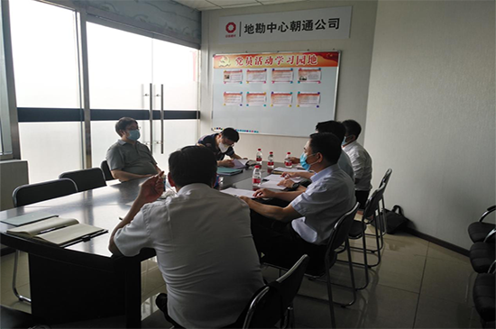 集团公司管理部总经理邵晓阳、地勘中心经营管理部部长陶勇、朝通公司领导班子成员参加调研座谈。