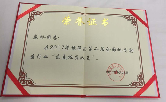 中国建材地勘中心广东总队秦岭,此次获得全国地质勘查行业第二届“最美地质队员”殊荣。