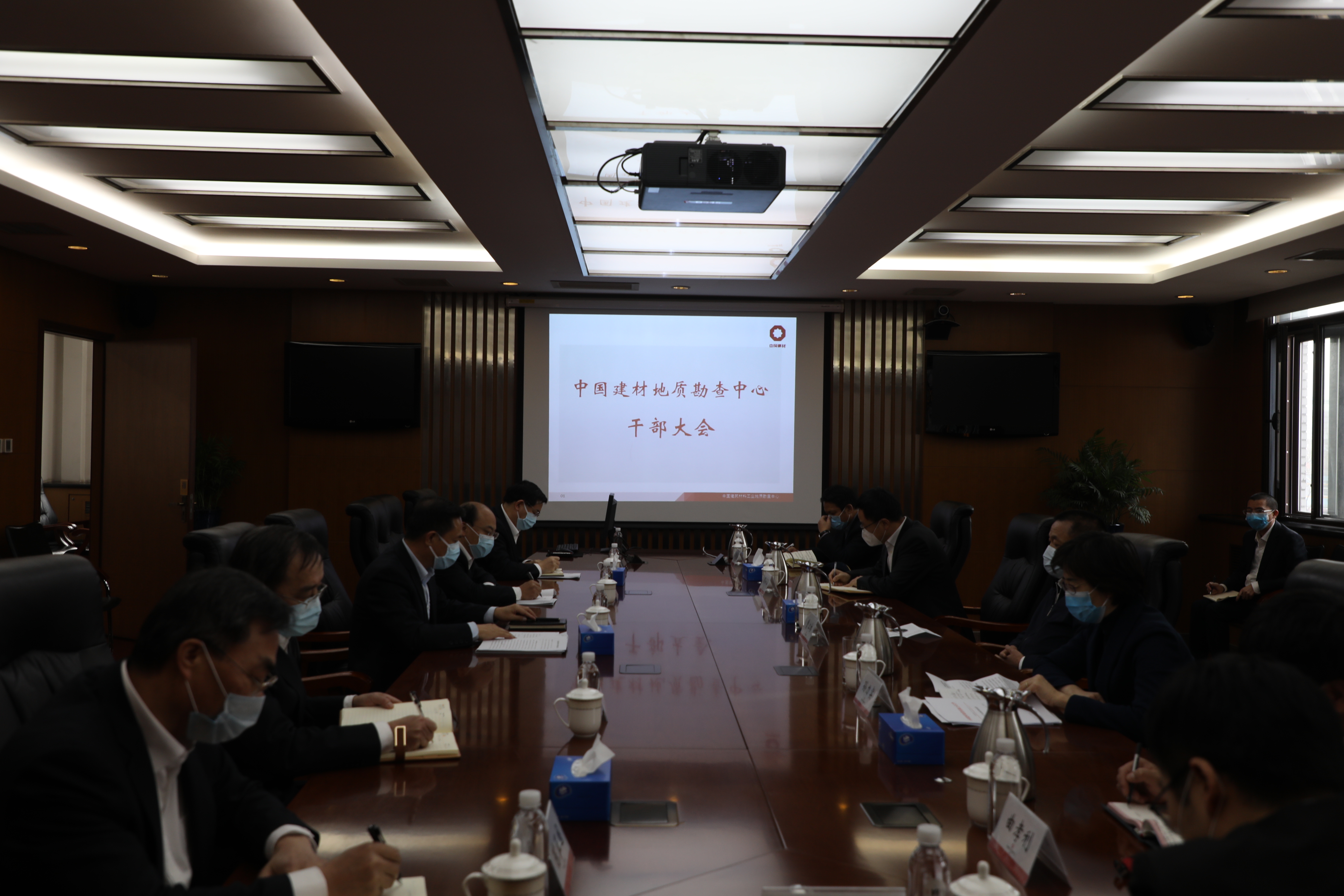 2020年3月6日,地勘中心召开干部会议,由集团宣布关于地勘中心领导班子成员的任职决定。集团总经理曹江林,集团党委副书记孙力实,集团总经理助理、战略发展部总经理魏如山,集团财务部总经理曲孝利,集团人力资源部相关人员出席会议?;嵋橛芍行闹魅?、党委书记吴岩主持。