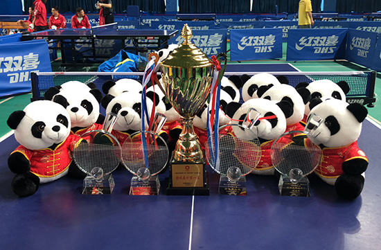 两年乒赛一朝逢,五项角逐百人争。夺金摘铜抖精神,一路高歌唱大风。