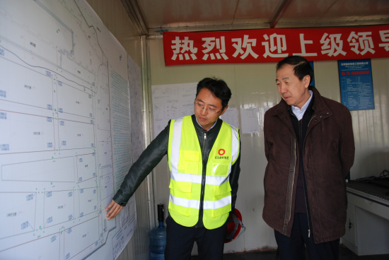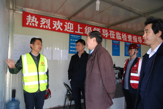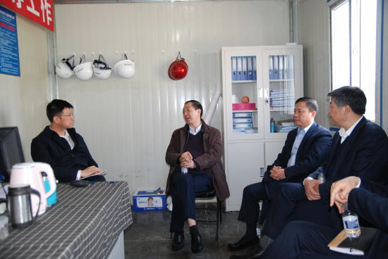 李建伦、吴岩一行深入工地施工现场,察看了工地施工的总体情况,并在现场指挥部听取了项目经理对项目概况和施工进度的详细汇报,对施工中的技术要求等重点问题进行了询问了解。