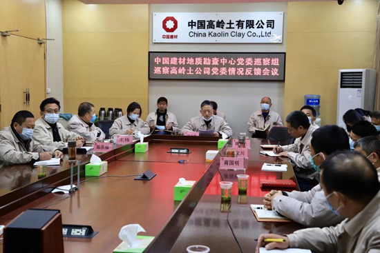 根据地勘中心党委巡察工作领导小组的统一部署,212月24日下午,地勘中心党委巡察组向中国高岭土有限公司党委反馈巡察情况。地勘中心党委副书记、纪委书记、巡察工作领导小组副组长洪中国出席会议并讲话,巡察组组长李根旭代表巡察组反馈巡察情况。中国高岭土有限公司党委书记刘全坤主持会议,并作表态发言。