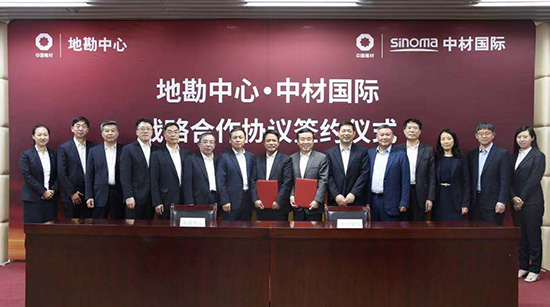 5月11日, 地勘中心与中材国际工程股份有限公司(以下简称“中材国际”)举行了战略合作协议签约仪式。地勘中心副主任李志威与中材国际副总裁孟庆林代表双方签署协议,中材国际党委书记、董事长刘燕,总裁、党委副书记印志松,地勘中心党委书记、主任吴岩等共同见证双方签约。