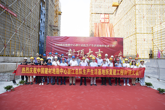 7日12日,浙江总队生产生活基地拆复建工程项目主体结构封顶仪式在项目现场举行。中国新型建材设计研究院有限公司董事长、总经理程华,党委书记施存有,副总经理何文跃;浙江城建建设集团有限公司董事长林韵强;浙江中材工程设计研究院有限公司董事长李建华;浙江明康咨询有限公司副总经理余新发;浙江总队党委书记、总队长金达表和参建单位的现场管理人员、浙江总队干部职工代表参加仪式并共同为项目浇下最后一斗混凝土。