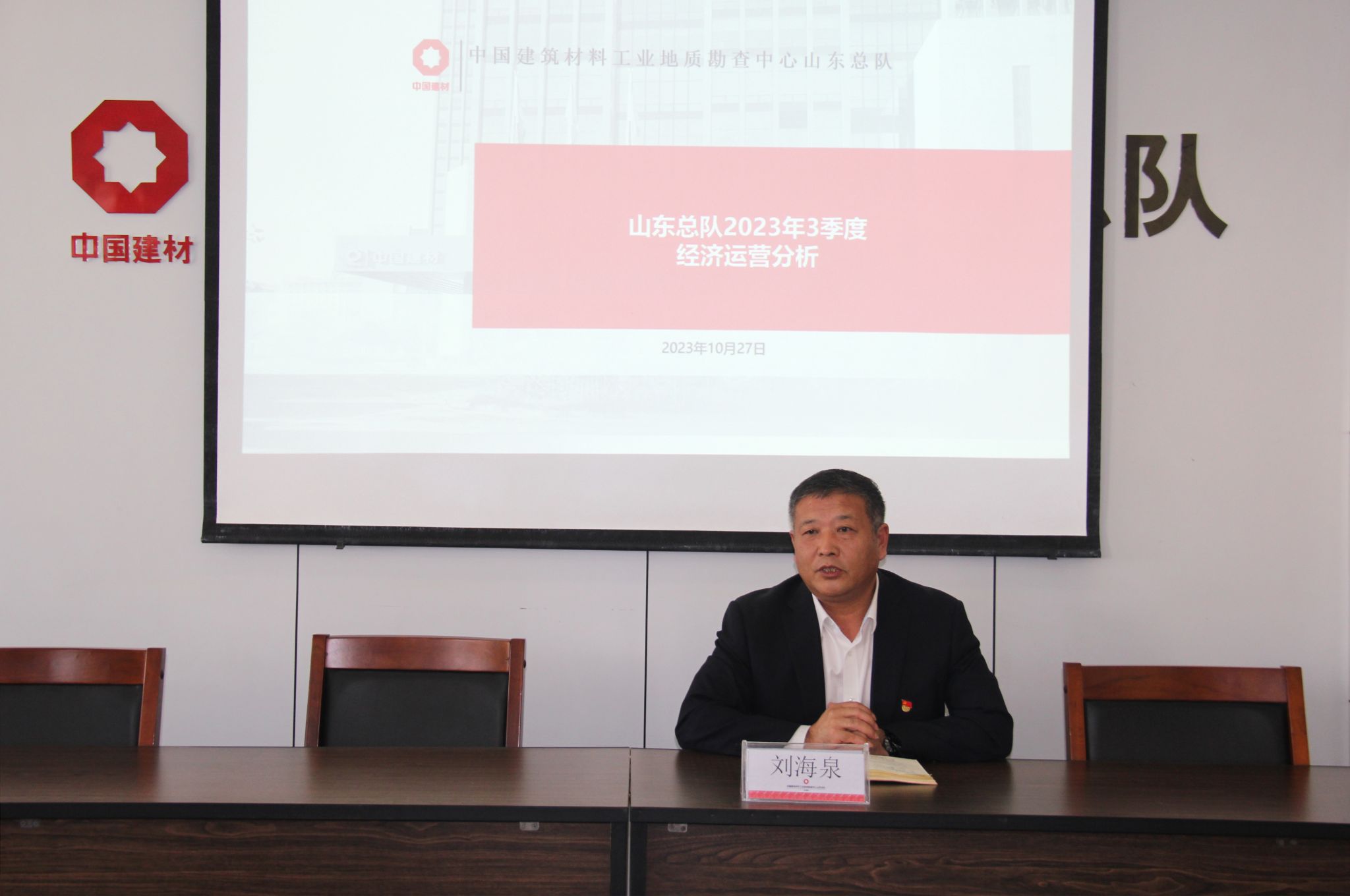10月27日,山东总队(有限公司)召开2023年第三季度经济运行分析会议。会议传达了地勘中心三季度工作会议精神,全面分析和总结了总队(公司)以及各生产经营部门2023年前三季度的经济运行情况,并对下一阶段工作做出部署和安排。总队领导班子成员、各部门正职参加会议,党委副书记、纪委书记孙亚廷主持会议。