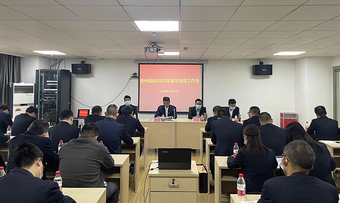 会上,党委书记、总队长樊亚结合总队实际,总结贵州总队三季度工作和部署下一阶段工作。报告用“一喜三忧”总结了总队第三季度主要生产经营情况,喜的是总队三个生产部门实现了同比增长,两个部门实现了预期目标;忧的是个别生产经营部门完成率未达预期、“两金”压控压力大、新签合同同比下降。下一阶段主要工作任务:一是认真学习贯彻党的二十大精神和习近平总书记给山东省地矿局第六地质大队回信精神。结合总队实际情况,认真落实自然资源部对矿产资源国情调查、大力实施找矿突破战略行动、矿产资源绿色勘查开发、勘查找矿的激励政策、地质找矿科技支撑这五个举措;二是紧盯生产经营,全面完成年度任务各项经营指标。他表示,各生产部门要对照年度生产经营责任书,按照任务清单和时间节点按时并全面完成。要抓好项目收款、合同签订、应收账款催收及备用金冲抵工作。要持续做好安全生产管理及疫情防控工作。三是全面推进企业化改革,各部门需做好协调,共同推进制度建设、资质变更等相关工作,确保全面推动现有业务和管理向企业平台转移。