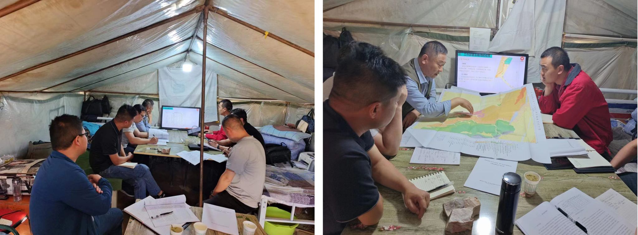专家组一行听取了项目工作汇报,并对项目执行情况、野外原始资料及主要实物工作量完成情况进行了检查。通过现场检查,专家组对项目安全生产、绿色勘查执行、资料整理以及取得的找矿成果给予了充分肯定,同时也指出项目目前存在的关键问题,提出加强综合研究、综合找矿、加快工程施工进度等建议。
