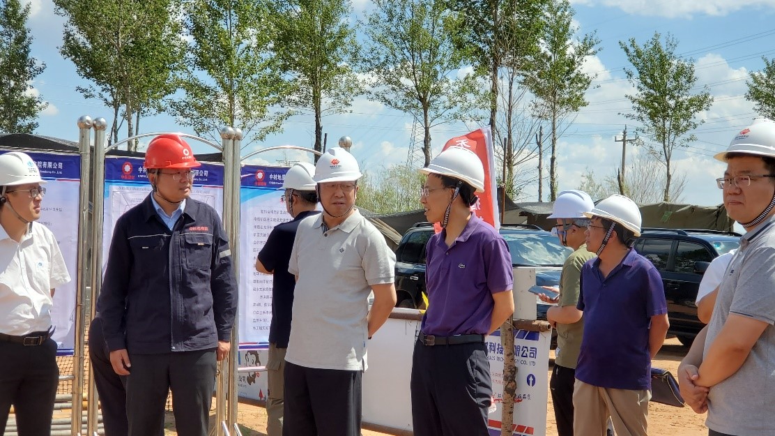 新街台格庙矿区是国家能源集团“十四五”规划的重点建设项目,是神东矿区周边唯一尚未开发的大型整装煤田,受到广泛关注。为了进一步推进新街台格庙矿区开发建设,2022年7月20日,国家能源集团副总经理杨鹏、神华新街能源有限责任公司总经理杨俊哲、副总经理王旭东、副总经理周爱平、总经理助理谢松岩等一行人考察了中材地质工程勘查研究院有限公司承担的《新街台格庙矿区动态水文监测系统》课题施工现场,就课题研究进程、现场施工等情况进行了调研指导。