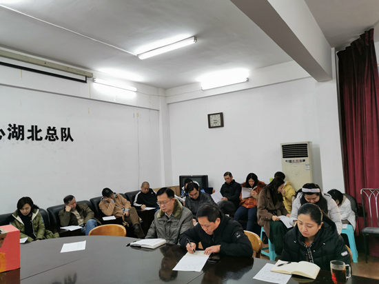1月7日至1月9日,湖北总队全体职工在会议室召开2019年度湖北总队职工总结考核会。会议由总队办公室副主任单铭洲同志主持。