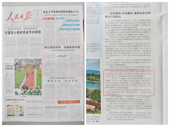 习近平总书记在党的十九大报告中指出,坚持人与自然和谐共生,必须树立和践行绿水青山就是金山银山的理念。中国建材地勘中心山东总队(有限公司)为深入贯彻习近平生态文明思想,坚决夯实矿山生态文明建设、地质环境保护、绿色矿山建设等技术服务基本功,形成了非煤矿山全产业链技术服务能力,集中矿产资源勘查院、地理信息中心、安全技术研究院等优势资源,充分发挥技术优势、协同合作,积极为集团及省内外矿山企业提供优质技术服务,为“绿色矿山”、“数字矿山”建设提供强支撑,助力矿山企业科学、绿色发展。其中,为莒县中联水泥有限公司提供技术服务的矿山,作为矿山督察整改的经验成效和优秀做法正面典型案例之一,在《人民日报》第27036期(7月18日)头版以《责任层层传导 共建美丽中国——中央生态环境保护督察成效综述之三》专栏中刊发。