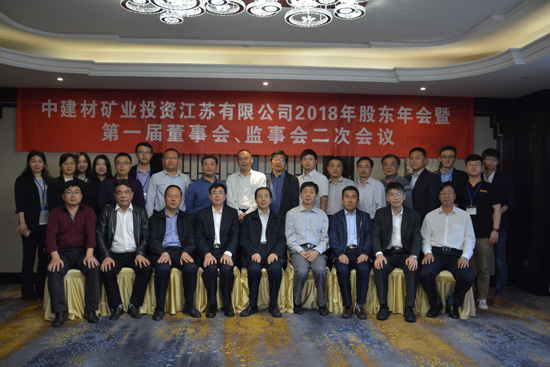 4月21日,中建材矿业投资江苏有限公司2018年股东年会暨第一届董事会、监事会二次会议在江苏南京召开,集团高级专务,地勘中心主任李建伦到会并作重要讲话,地勘中心总会计师李彩洪应邀出席会议。