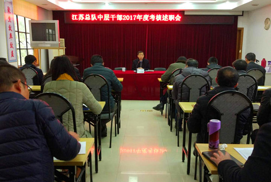 1月19日—22日,江苏总队召开2017年度中层干部考核述职会,总队领导班子成员、中层管理干部、党支部书记及考核组成员等参加考核会。会议由党委书记、总队长汪要武主持。