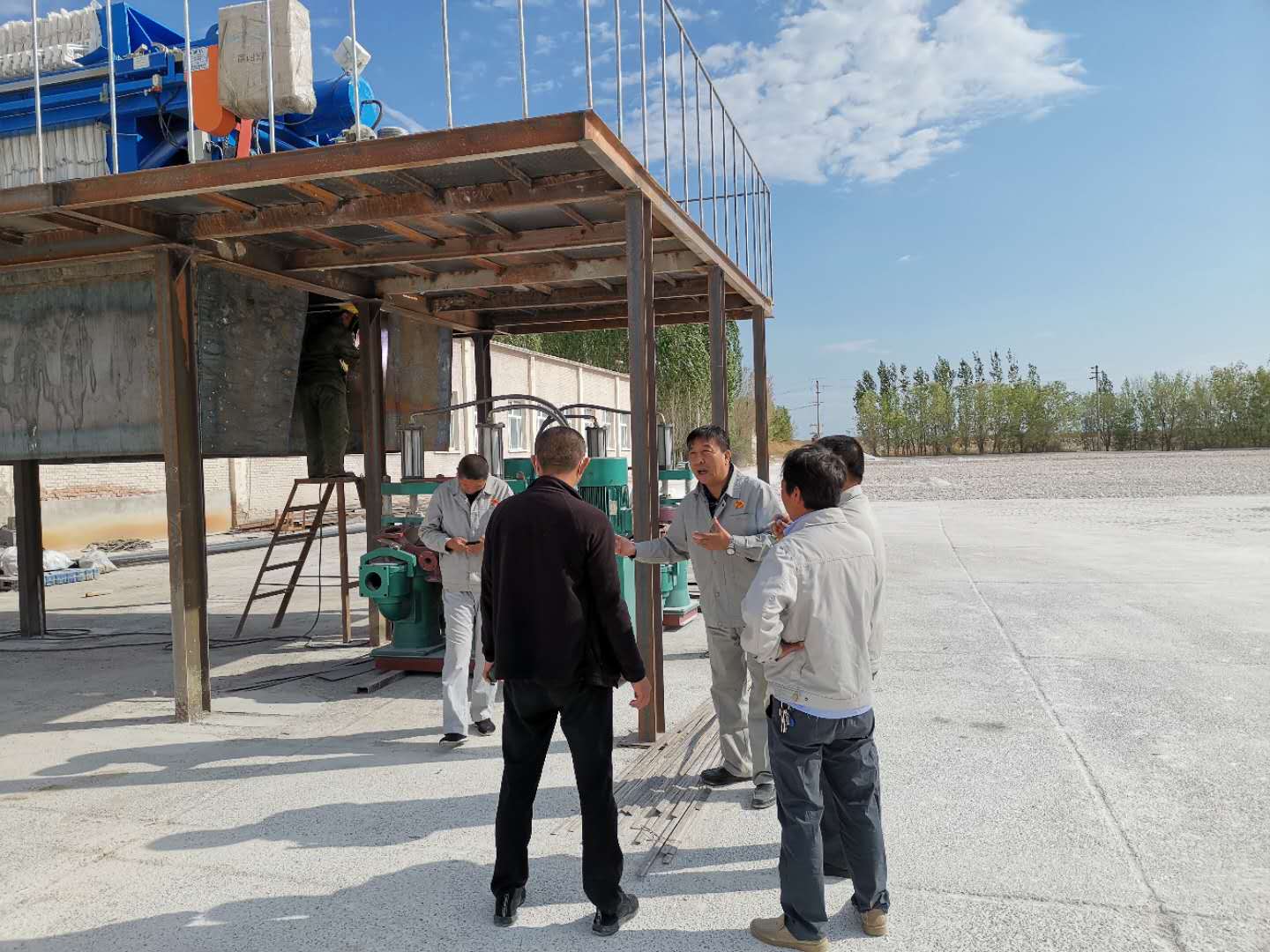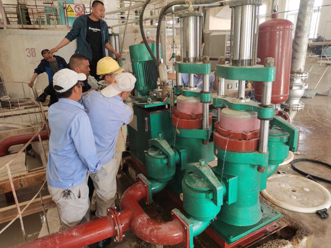5月11日下午4点30分,活性土车间板框技改设备正式进入调试,技改小组人员全部到位准备就绪,在设备工程师秦工的指导下,通过前期充分的准备,开机、泵浆、打板、卸板一气呵成,现场一片欢腾。