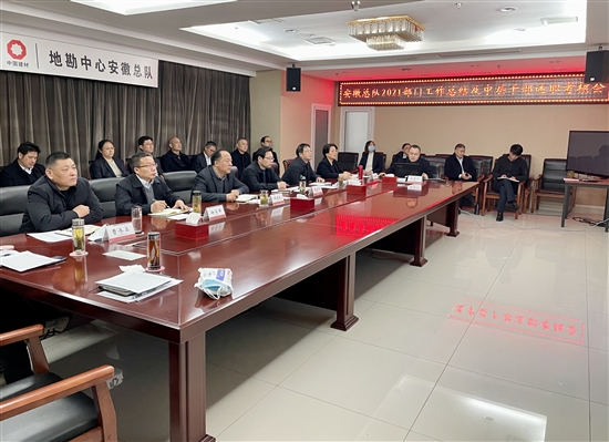 党委书记、总队长许国礼同志在认真听取了所有单位、部门和中层干部的述职报告后,用四个词总结了2021年的工作:一是“成绩优异”,主要经营指标大幅提升,创历史最好成绩,实现了高质量发展,再次荣获“地勘中心先进集体”;二是“亮点突出”,总队企业化平台建设工作成功开展,新基地建设有序推进,矿业开发项目进展良好,各项业务全面开花;三是“协同有力”,总队通过加强与集团内部企业的合作,实现了互利共赢;四是“党建突出”,总队党史学习教育成果突出,十九届六中全会精神学习扎实有力,专题纪律教育入脑入心,成功举办了集团“健跑百年路 奋斗新征程”主题活动等一系列优秀的党建活动,总队“四心塑四型”党建品牌荣获集团、地勘中心“优秀党建工作品牌”荣誉称号,党建工作有了进一步提升。