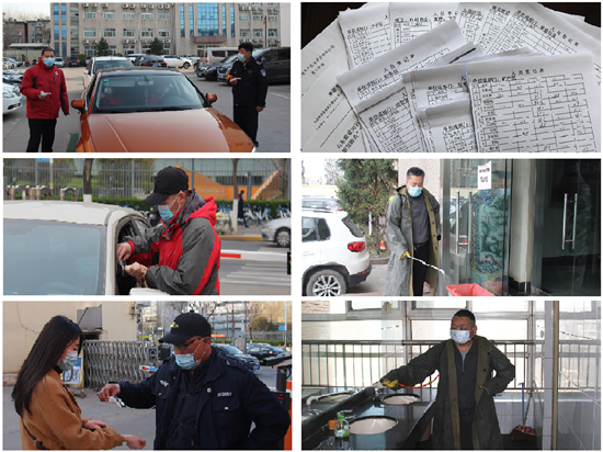 后勤管理部四十余天一直坚守在总队疫情监测点,与防疫志愿者工作队密切配合,对进出人员、车辆进行登记、测温和消毒,共同筑起总队第一道防线。后勤管理部坚持每日早晚两次对办公区域进行消毒清洁,对总队职工和32家租户公司的职工进行三次测温、登记。按照上级及政府要求,后勤管理部及时向租房客户、家属院居民传达政策规定及总队各项防控规定;协助街道、社区排查租房客户复工人员流动信息,担任了疫情防控的先锋军。