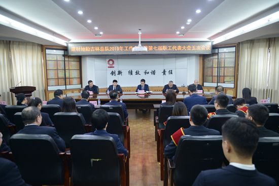 1月29日,吉林总队召开2019年工作会议暨第七届职工代表大会五次会议。总队领导班子成员、中层干部、高级项目经理和先进个人等80余人参加了会议。会议由总队党委副书记、纪委书记、工会主席滕永伟主持。