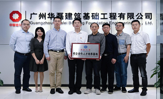 11月9日上午,广州华磊建筑基础工程有限公司与中南大学校企合作人才培养基地授牌仪式在广东广州举行。出席本次授牌仪式的有中南大学地球科学与信息物理学院副院长张绍和教授、地质工程系主任孙平贺教授、系书记陈科平教授、广州华磊公司董事长赵建国(中国建材地勘中心广东总队党委书记、总队长)、总经理陈孝轩、副总经理廖辉辉、总工程师赵学文等。