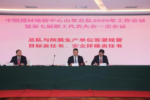 会议对2019年总队各类获奖项目和山东总队先进集体、先进个人进行了表彰。总队长刘海泉代表山东总队与各产业部门负责人签订2020年经营目标责任书和安全环保责任书。