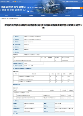 砂石矿产资源作为国民经济发展的重要基石,自国家环保政策收紧以来,砂石资源供需矛盾突出,价格上涨,各级政府高度重视,将砂石资源提升为重要矿产资源,要求自然资源主管部门把保障好砂石资源供给作为重要工作。山东总队获悉该政策后,积极与地方自然资源主管部门对接,并在招标公告发布后,立即组织相关人员研究招标文件,着手制作标书,凭借总队非金属勘查领域的技术优势和全体参与人员的共同努力,成功中标“济南市砂石资源现状调查及供需形势研究”和“烟台市砂石资源开发利用专项规划(2021-2025年)”两个项目,合同金额分别为120万元和140万元。