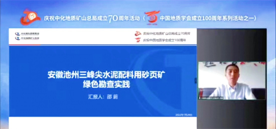 总队青年技术干部邵蔚以视频交流方式做题为“安徽池州三峰尖水泥配料用砂页岩矿绿色勘查实践”的学术报告。基于该项目前期有效探索与实践,邵蔚从项目概况、绿色勘查策划、绿色勘查实践、结论与建议四个方面进行了交流分享及互动答疑,很好地展现出总队青年技术人员良好的精神风貌及科研能力。会后,本次学术会议指导委员会、学术委员会的相关领导及专家对内容合理性及实效性给予一致好评。