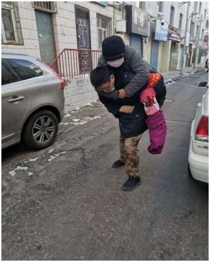 总队职工李奇林的爱人胡艳娇是一名长春北路社区的党建工作人员,疫情防控以来,她虽然身怀五个月的身孕,毅然投身到抗击疫情工作第一线。每天接打电话200余个,逐户摸底排查,对不理解的群众耐心解释,每天为需要居家隔离的住户买菜送菜、扔垃圾等。她的辛苦付出也得到了居民的肯定。在口罩紧缺的关头,有居民主动送了几个N95的口罩。看到他买菜提菜的辛苦,又有居民主动把自家买菜用的手推车拿出来让她使用。这些点点滴滴的相互关爱,给这个寒冷的冬日增添了一幅幅温暖的画面。