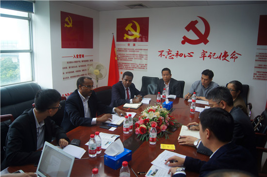 赵建国总队长向总领事介绍了总队的基本情况:广东总队是中国建材集团属下的非金属矿专业国家级勘查队伍。专门从事非金属矿产勘查和开发、地质灾害防治与治理、岩土工程地质勘察、工程测绘等技术工作。业务范围广,技术能力强,具有丰富的国外项目经验。希望通过总领馆沟通,借此次考察团出访机会,与埃塞俄比亚展开多方业务合作,对可利用的自然矿产资源进行科学开发,推动经济增长,实现共赢。