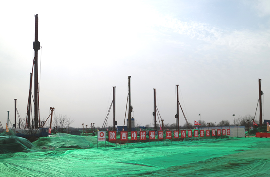 总队下属陕西中祥基础工程有限责任公司经过艰苦努力,最终依靠诚信为本的经营理念和科学合理的施工方案赢得了业主方的信任,争取到了本建设项目的桩基施工工程。该桩基施工项目设计总进尺约100万米,工程总造价约6000余万元,是陕西总队近年来所承担的规模最大的施工项目。在总队的大力支持和全体项目人员的共同努力下,项目部克服来自各方面的困难和压力,科学组织、严格管理、精心施工,得到了业主方和政府主管部门的高度肯定,尤其在环境保护方面,项目部严格执行政策要求,采取有力的降尘防霾措施确保达标,使得本项目成为空港新城唯一一个获批可冬季涉土作业的施工项目。