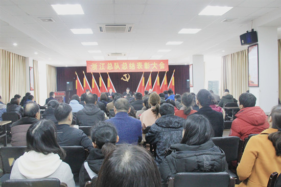 1月13日,浙江总队召开了2019年度总结表彰大会,回顾总结2019年度工作,部署2020年重点工作,并对先进集体和个人进行了表彰。总队党政班子成员、全体干部职工70余人参加会议,地勘中心总会计师李彩洪及地勘中心主任助理、投资发展部部长刘洪涛到会指导。会议由副总队长徐宏峰主持。