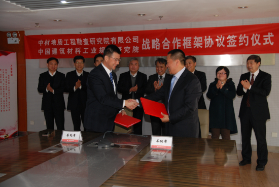 11月22日上午,中材地质工程勘查研究院有限公司(以下简称地勘院)与中国建筑材料工业规划研究院(以下简称:规划院)在北京举行战略合作协议签约仪式,执行董事、总经理田震远,党委书记郭党生,规划院院长曾令荣等领导出席签约仪式,签约仪式由郭党生主持。