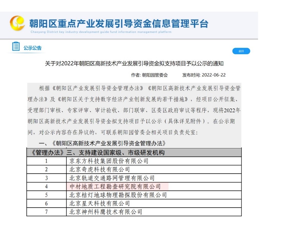 6月24日,地勘院首次获得2022年度北京市朝阳区高新技术产业发展引导资金支持,体现了政府部门对地勘院科技创新工作的高度认可和支持。这对加快地勘院科技成果转化,提高科技人员积极性,推动科技工作创新发展具有重要的里程碑意义。