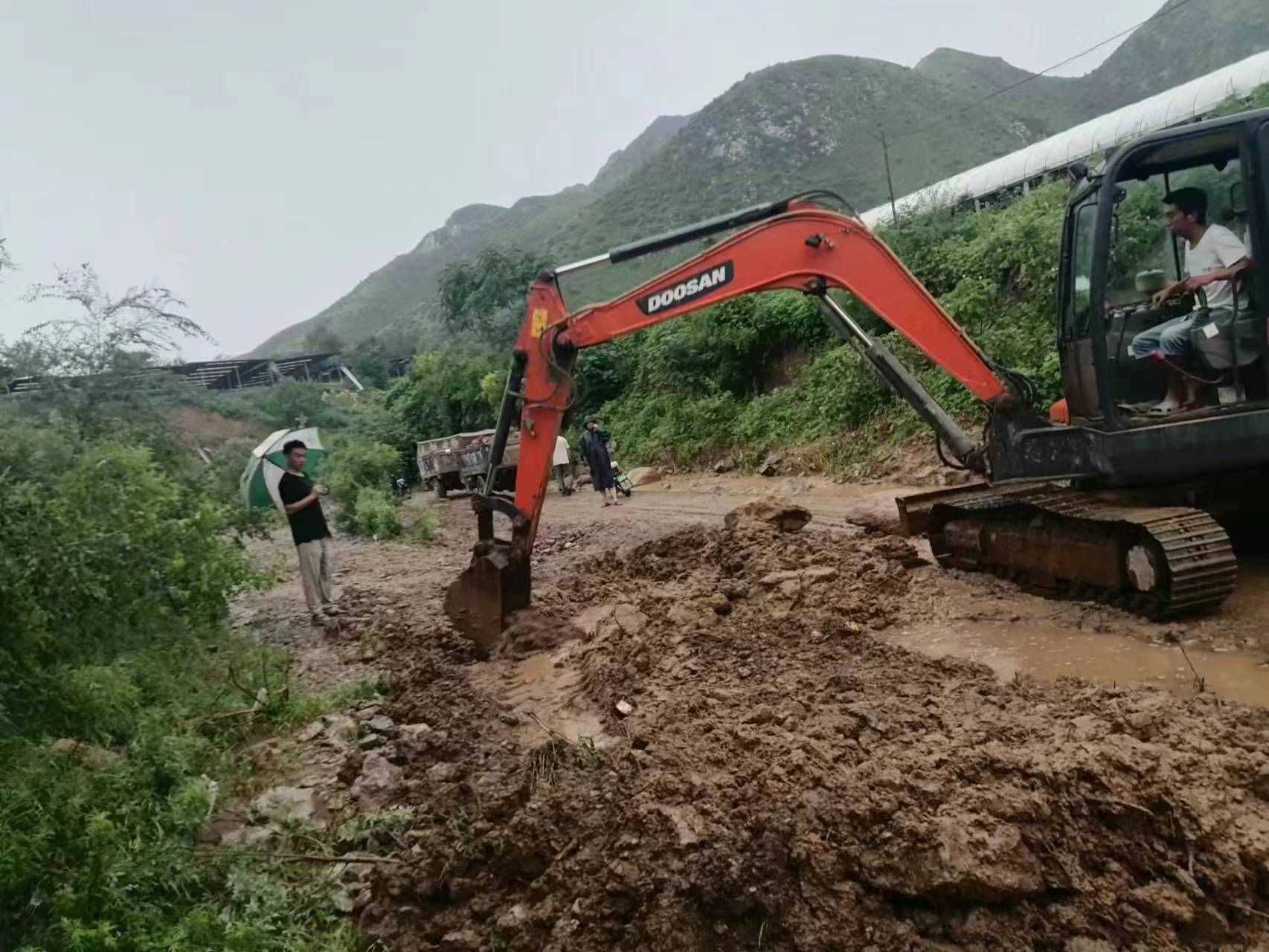 灾害发生后,及时与村两委核查统计受灾情况,做好灾情上报,组织引导群众开展生产自救。强降雨后,村内部分道路发生塌方、断道,房屋成为危房。工作队立即与村两委干部一道,组织人员机械疏通道路、拆除危房、在危险区域设置警示标志,安排人员进行警戒,确保交通安全。