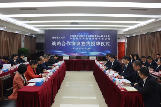 四川总队/中建材西勘公司与成都理工大学签订战略合作协议暨授牌仪式