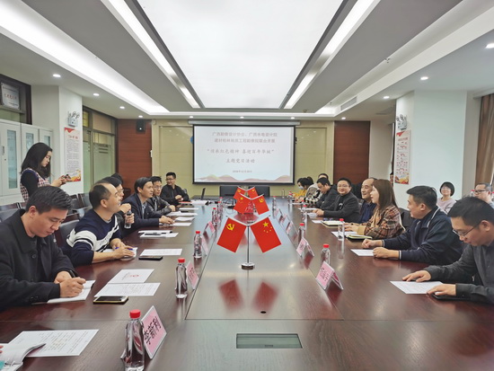 随后,各党员来到广西水电设计院进行参观、座谈。广西水电院党委委员、副总经理林栋材,广西勘察设计和重点工程协会党支部书记、广西勘察设计协会副理事长、秘书长覃燕娜,广西勘察设计协会副理事长、常务副秘书长王桂强,总队党委委员、副总队长汤湘军及总队勘察党支部委员、工勘院南宁分公司总经理张友军等分别就各单位党建情况、企业发展情况以及行业经济发展形势、发展热点进行深入探讨交流。