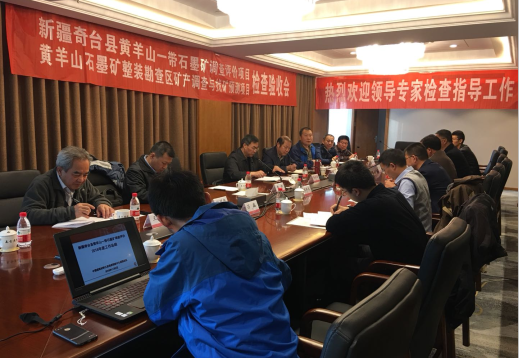 11月5日,《新疆奇台县黄羊山石墨矿调查评价》和《新疆奇台县黄羊山石墨矿整装勘查区矿产调查与找矿预测》项目检查验收会在乌鲁木齐召开,中国地质调查局、中国地质调查局发展研究中心、新疆国土资源厅、自治区地质勘查基金中心和武警黄金第八支队等单位的相关领导、专家参加了会议。会议由地勘中心总工程师陈正国主持。