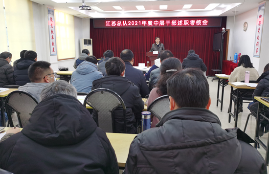 为落实地勘中心2021年度工作汇报会上吴岩主任提出的成员单位干部员工年终考核全覆盖要求,按照总队年度工作会议部署,2021年12月28-29日,江苏总队召开2021年度中层干部述职考核会,会议由党委书记、总队长汪要武主持。