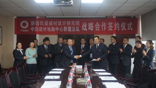 11月16日,中国建材地勘中心新疆总队与新疆凯盛建材设计研究院在新疆凯盛建材设计研究院会议室签署《战略合作协议》。自治区建材行办党委委员、规划处处长田文国出席签约仪式,新疆总队总队长樊文军和新疆凯盛建材设计研究院院长任永明分别代表双方签署协议。