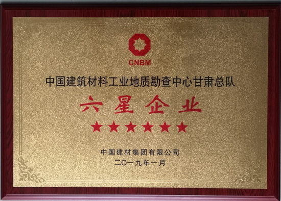 在中国建材集团2019年工作会议上,表彰了22家“六星企业”,中国建筑材料工业地质勘查中心甘肃总队名列其中,荣获中国建材集团2018年度“六星企业”荣誉称号。