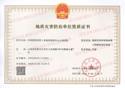 喜 报 | 云南总队获地质灾害评估和治理工程勘查设计甲级资质、地质灾害治理工程监理乙级资质