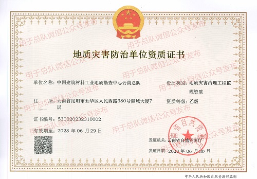 该项资质的取得为云南总队进一步拓展地质灾害防治领域市场范围、增强市场竞争力、打开市场新局面提供了强有力的支撑,也为推动云南总队不断调整优化产业结构、多元化经营和战略化经营奠定了坚实基础。