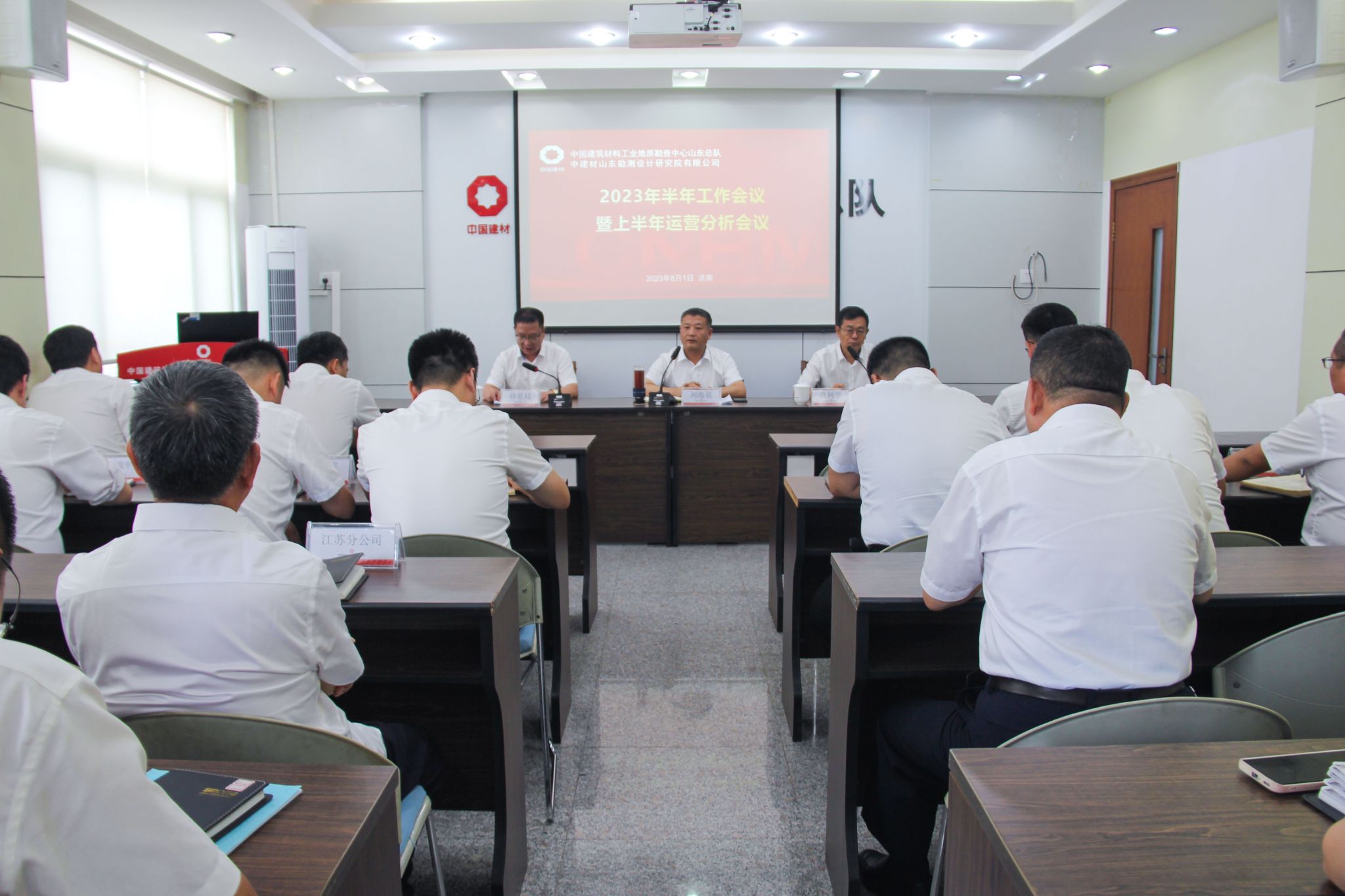 发布日期:2023-08-02 作者:山东总队8月1日,山东总队(有限公司)召开2023年上半年工作会议。会议以习近平新时代中国特色社会主义思想为指导,全面落实集团、地勘中心上半年工作会议精神,全面启动国企改革深化提升行动。副总队长高树学主持会议,总队领导班子成员、中层以上干部参会。