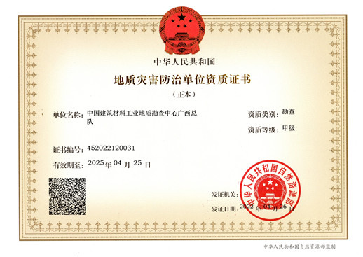 近期,广西总队资质升级取得新突破,地质灾害防治勘查资质由乙级升为甲级。