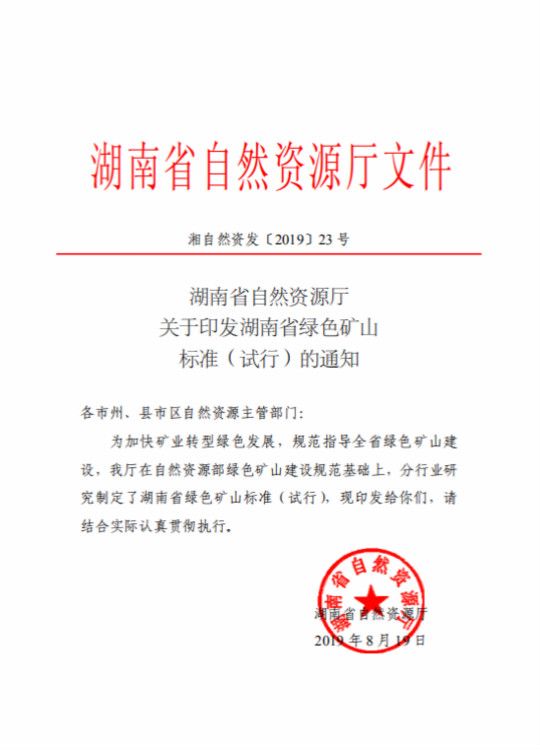 8月19号,湖南省自然资源厅关于印发湖南省绿色矿山标准(试行)的通知,本次湖南省绿色矿山标准(试行)发布涵盖了煤炭、有色金属、非金属等近十余个行业。中国建材地勘中心湖南总队主要起草《湖南省水泥行业绿色矿山标准(试行)》、《湖南省砂石行业绿色矿山标准(试行)》两个标准。